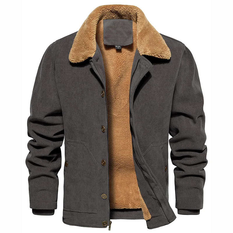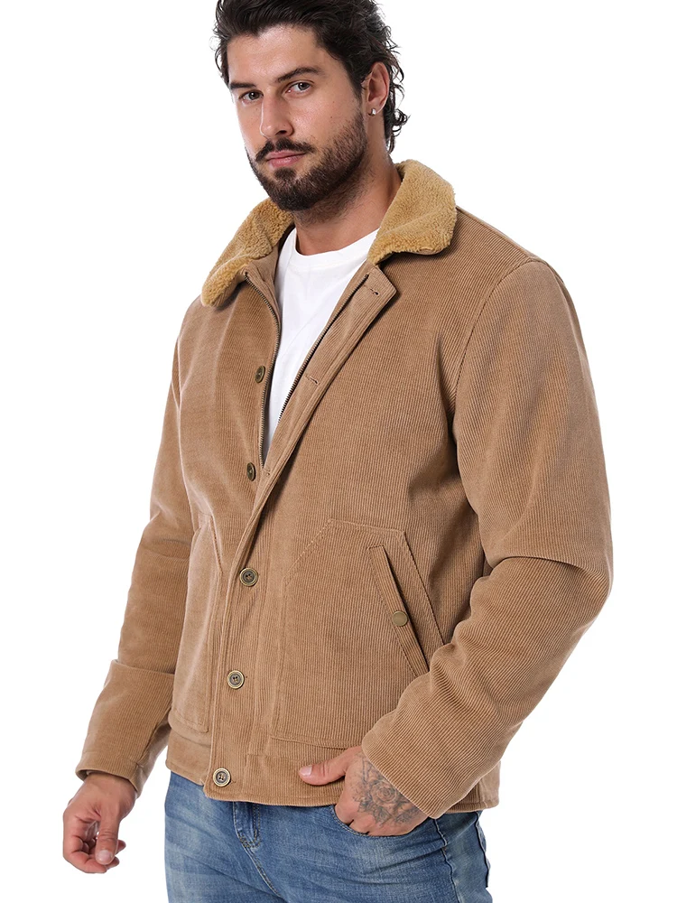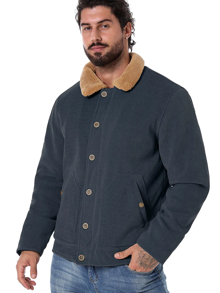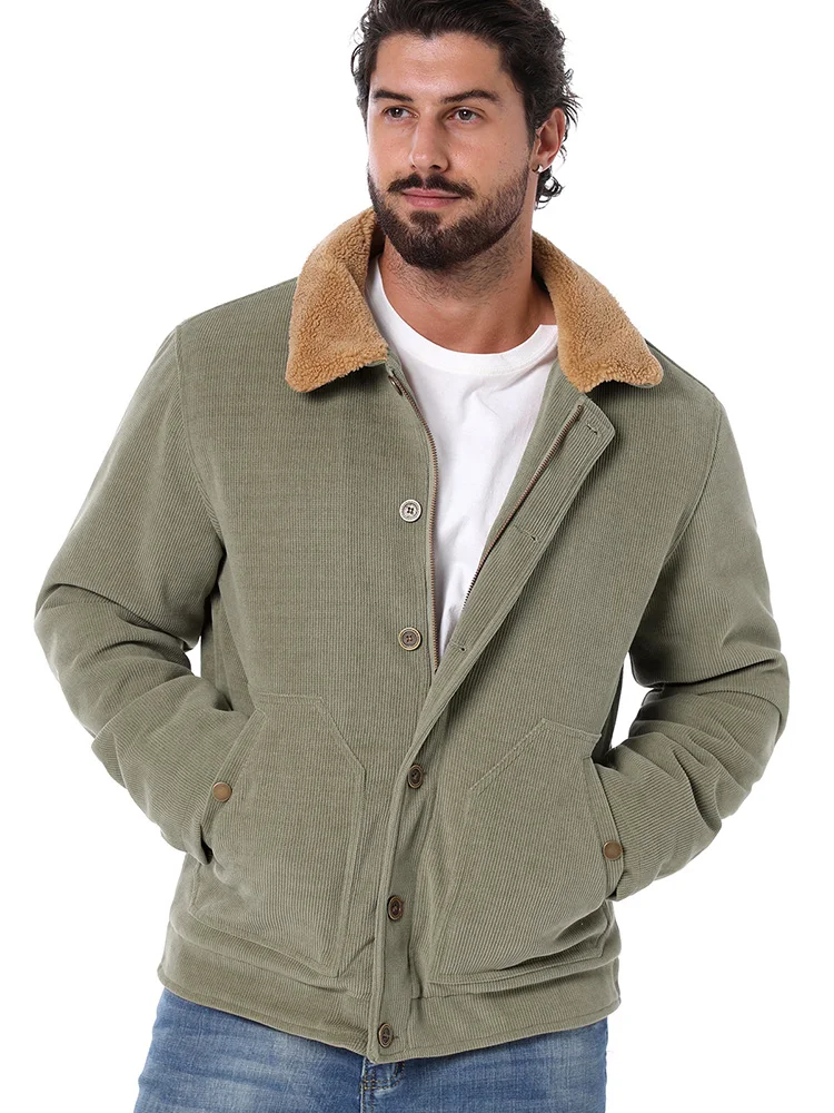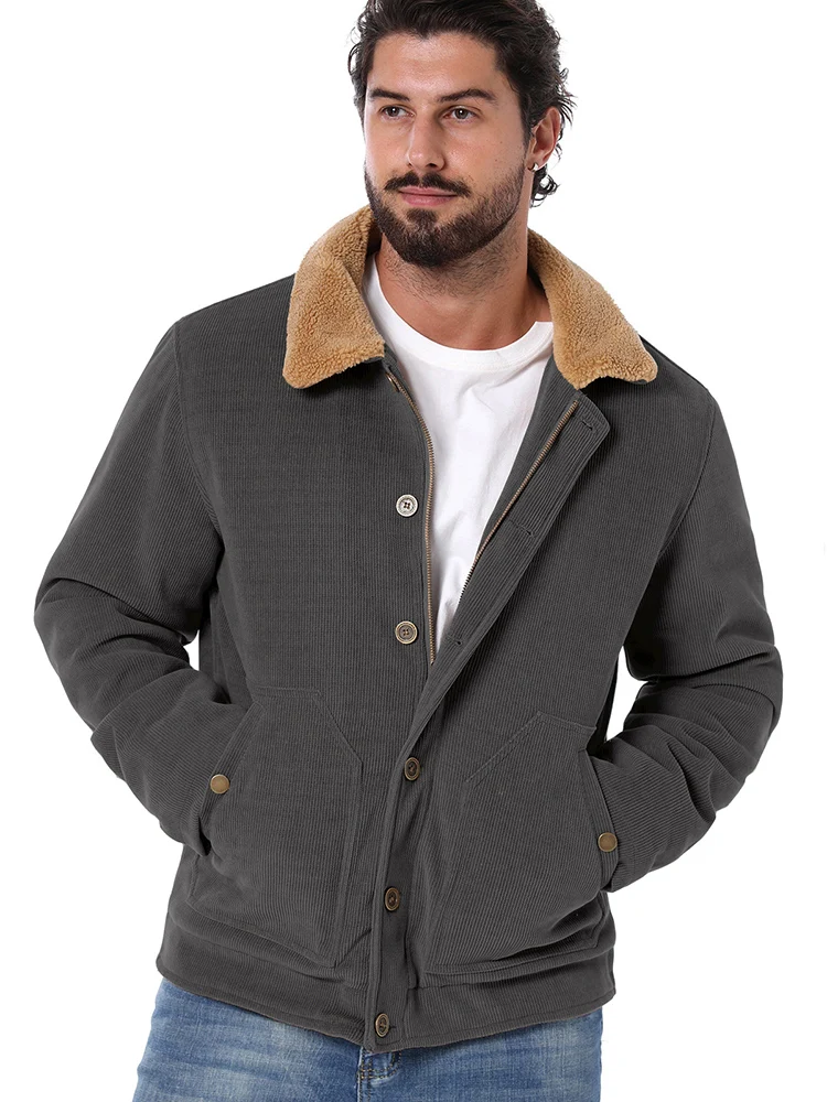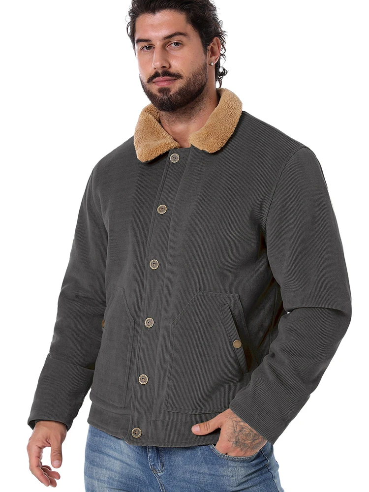 Men's Corduroy Jacket Fleece Warm Lined Cargo Work Jacket Casual Thick Sherpa Collar Coats