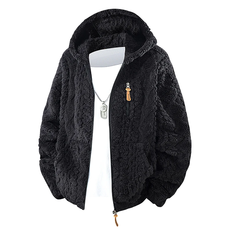 Men's Hooded Fleece Jacket Casual Fashion Thick Warm Coat Outwear Loose Fashion Coat Sherpa Jacket