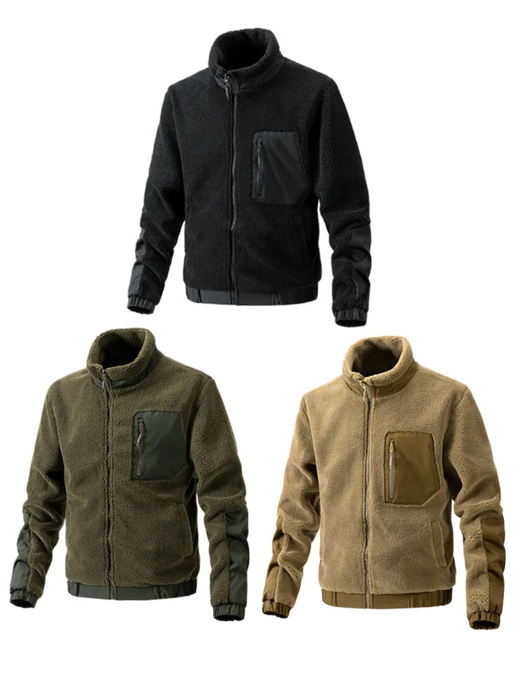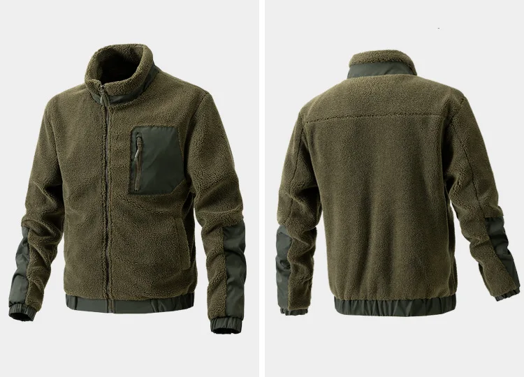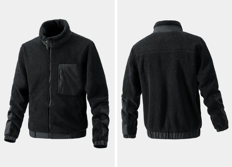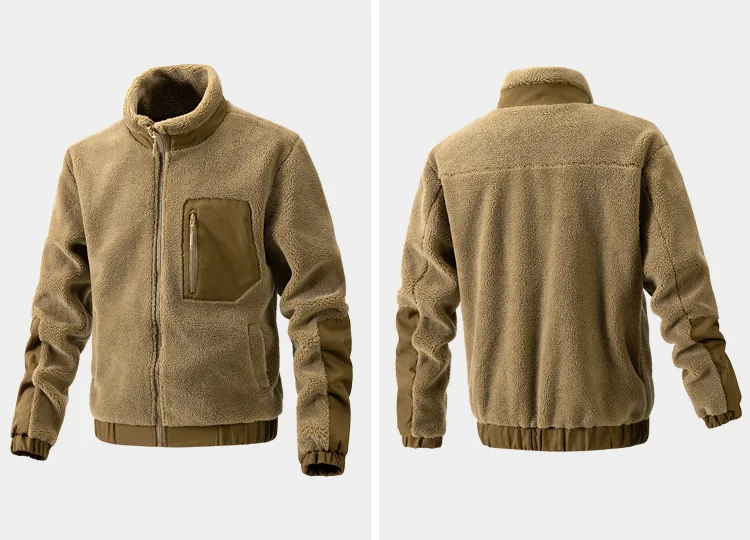 Men's Stand Collar Sherpa Fleece Jacket Casual Outdoor Cardigan Coat Zipper Jacket