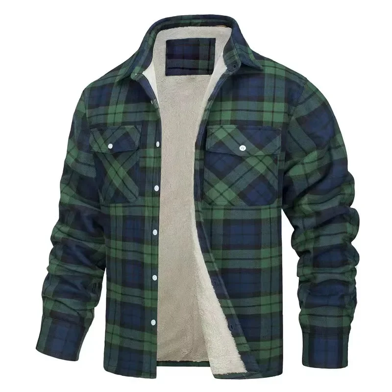Men's Fleece Plaid Jacket Casual Loose Cotton Jacket Thicken Lining Flannel Warm Outwear