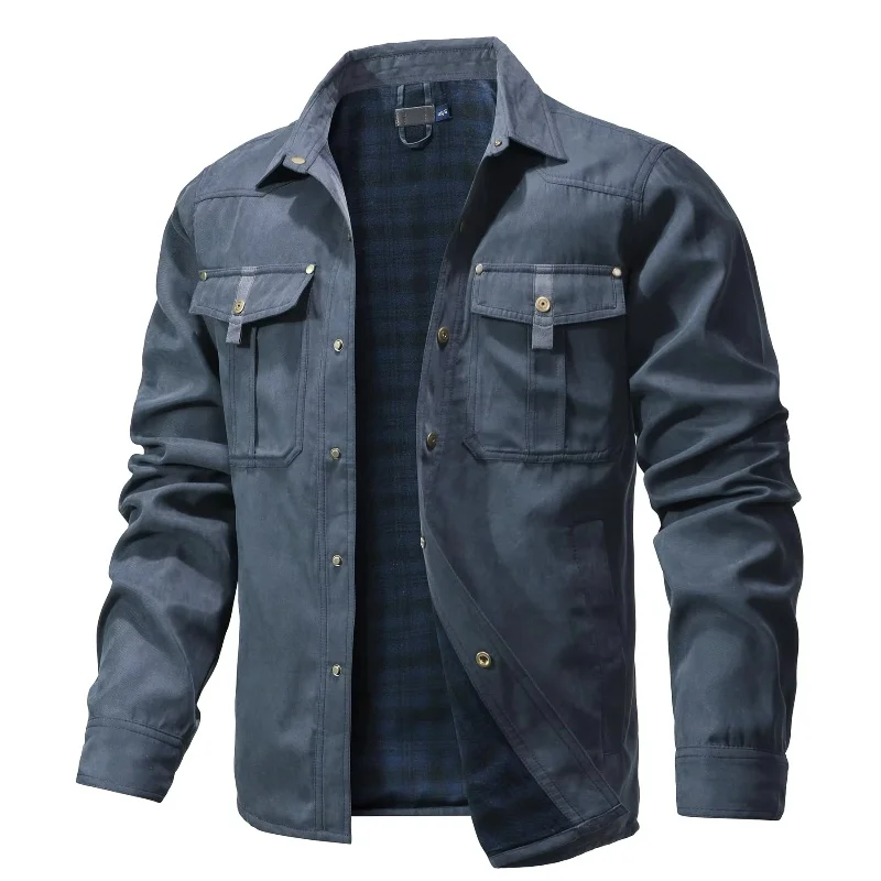 Men's Jackets Lined Shirt Jacket Shacket Casual Snap Button Overshirt Western Cowboy Style